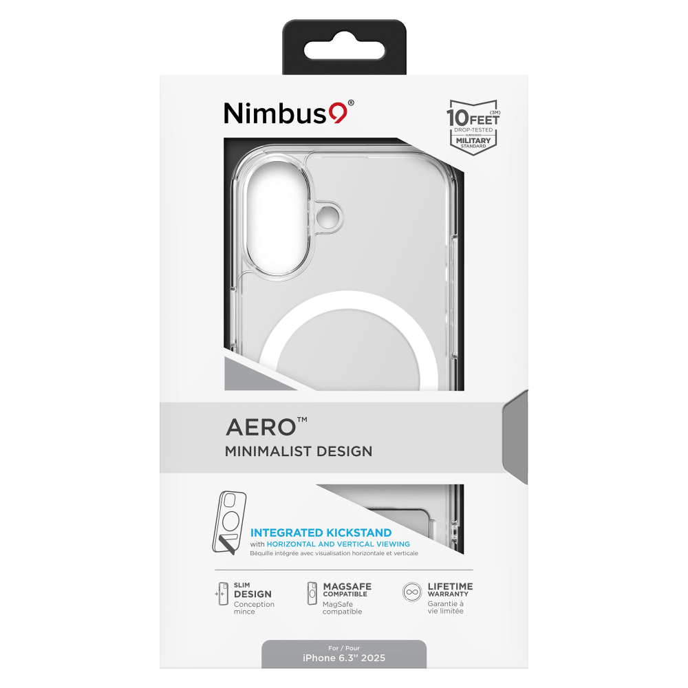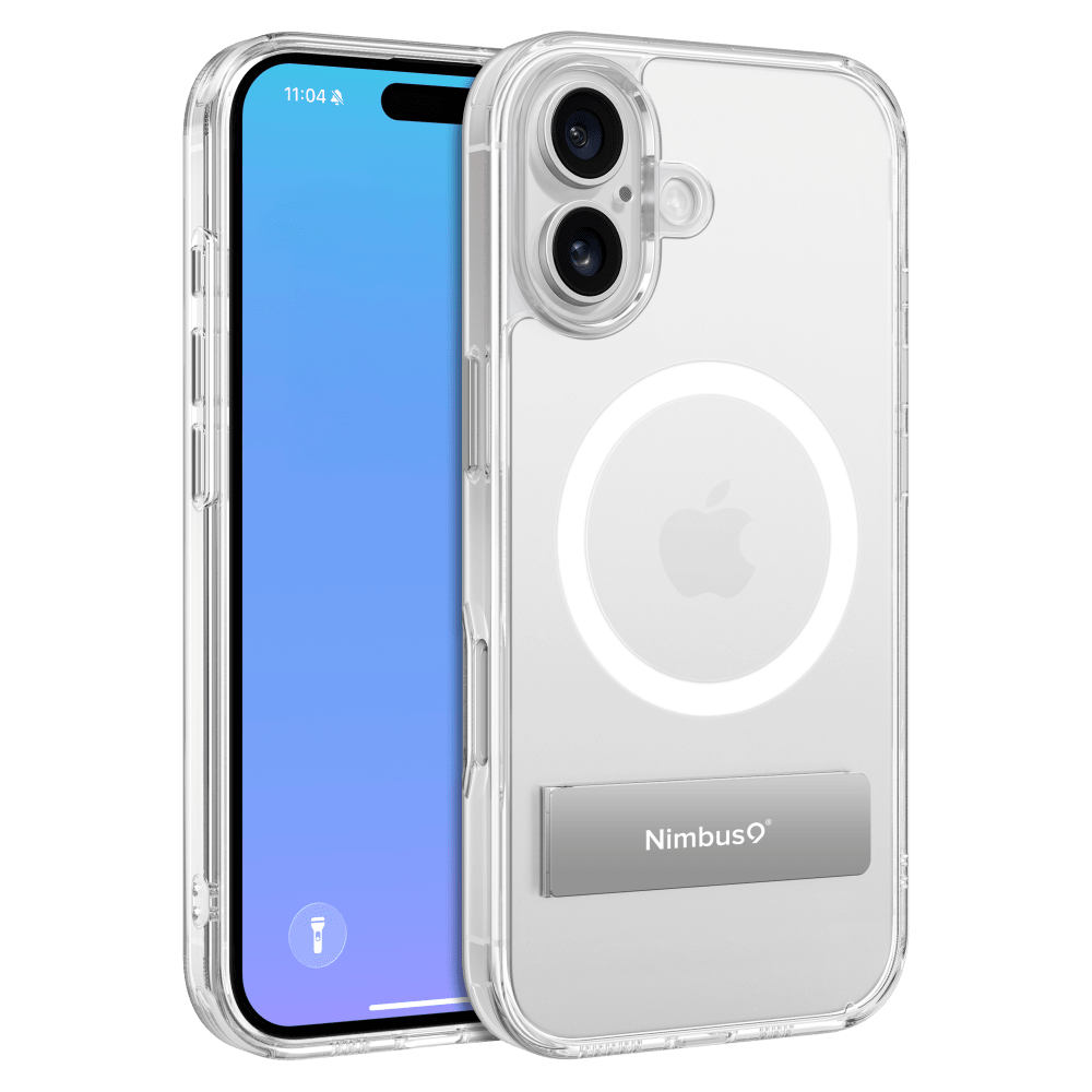 The Nimbus9 Aero MagSafe Case is the perfect fusion of minimalist style and everyday versatility. With a built-in kickstand offering 125° of adjustable viewing, it’s great for hands-free streaming, video calls, or catching up on content anywhere. Despite its slim profile, it’s certified to survive drops from up to 10 feet—so you get serious protection without the bulk. The crystal-clear design shows off your phone’s natural beauty while keeping things clean and modern. And with full MagSafe compatibility, snapping on your favorite accessories and mounts is effortless. Whether you're working, watching, or on the move, the Aero MagSafe Case keeps your phone protected and your day flowing.
