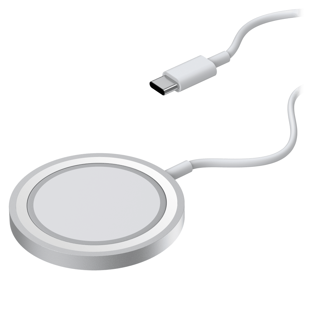 Compact, wireless charging pad for MagSafe blends in on nightstands and workstations. This sleek, charging pad is easy to attach and remove and refuels your iPhone fast while keeping it handy for quick reference. Stay connected to everything going on and fully powered with Charging Pad for MagSafe.