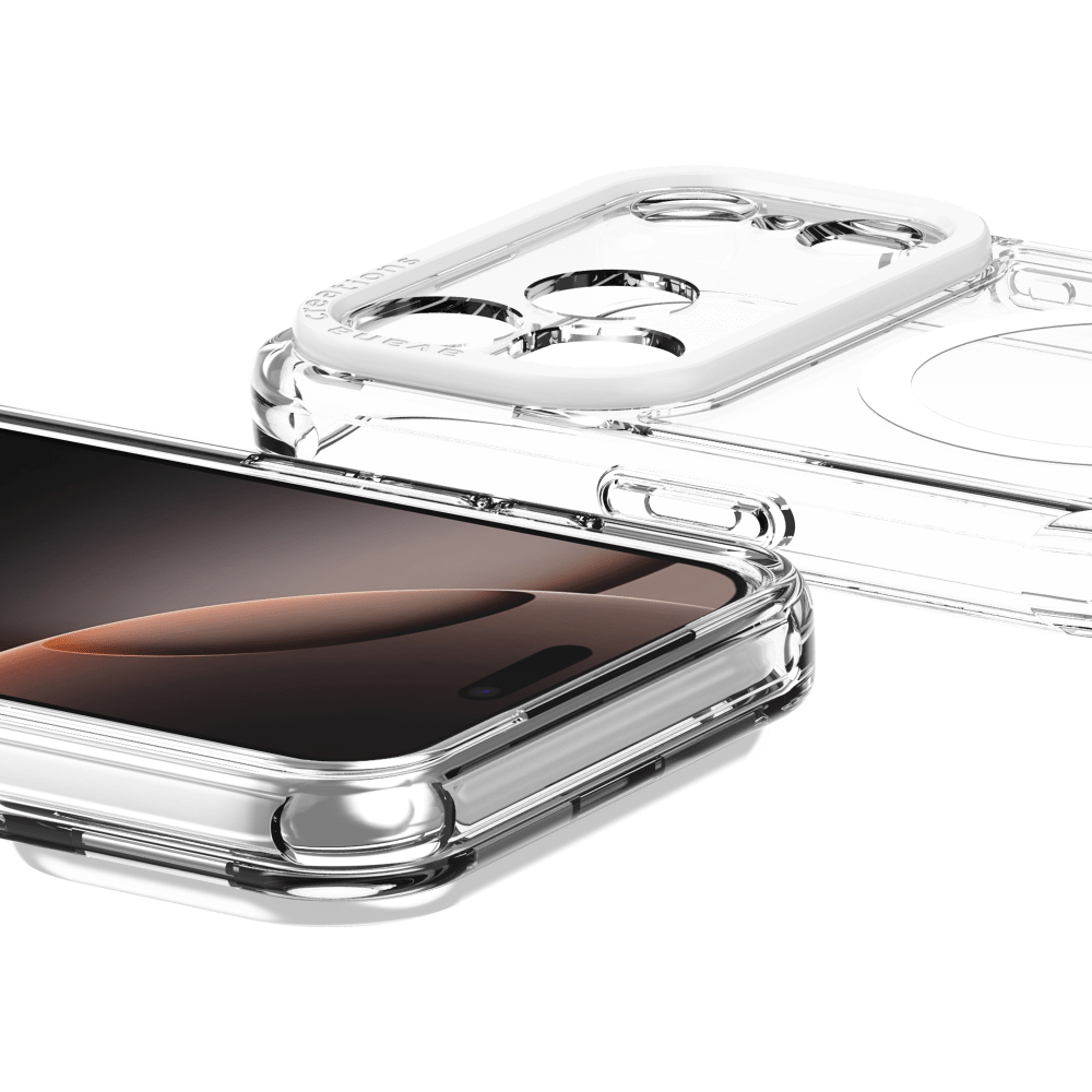 Ice-cool crystal clarity. Recycled resilience, endlessly sharp. This case is a transparent shield with subtle edge. Self-healing finish, 10 ft drop protection, 100 % recycled materials, extra-strong MagSafe, strap slot. quiet strength in every detail.