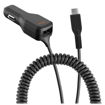 Get 15W charging that is 3x faster than a standard 5W charger with the 20W ULTRAFAST Dual USB-A and USB-C Car Charger and Connected USB-C Cable. The connected 3' coiled USB-C cable provides 15W of power and is excellent for travel while the 5W USB-A port can keep another device (or friend) powered-up while on the go!