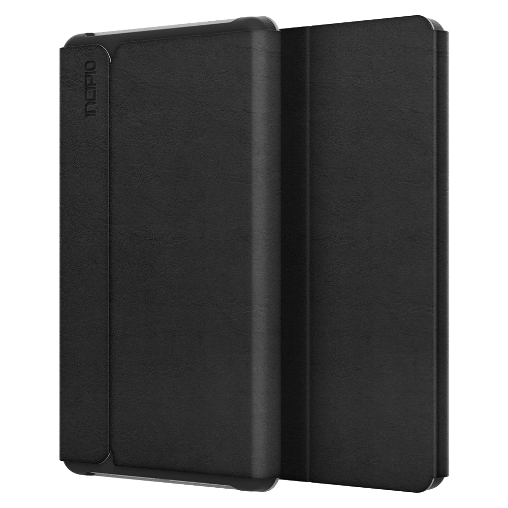 Users can keep their device secure with Incipio's Faraday case. Protected by a rigid Plextonium polycarbonate hard shell and smooth vegan leather cover, this fold over design is perfect for securing a device with a magnetic grip, allowing users to take their device with them anywhere they go.