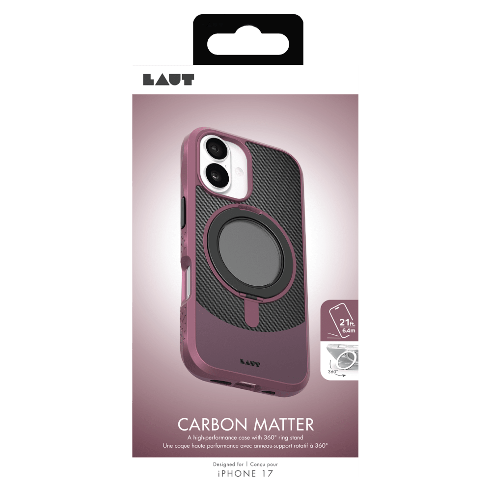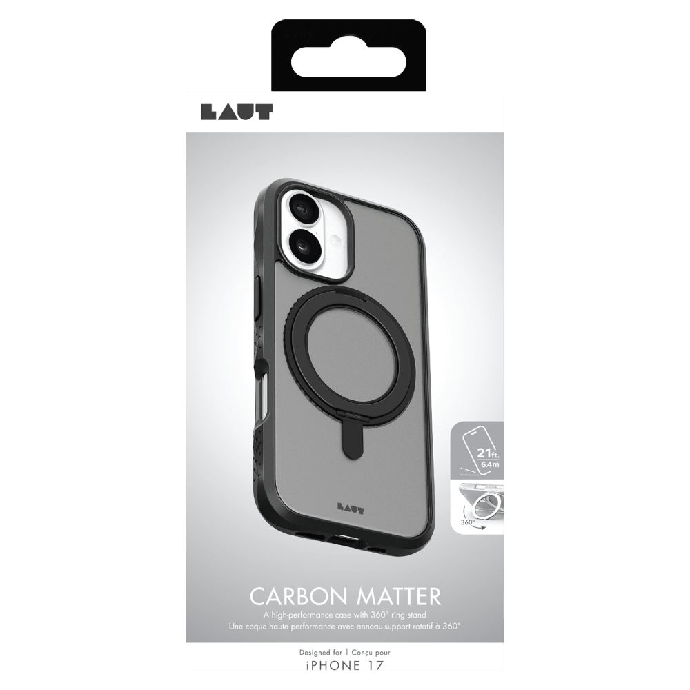 Discover CARBON MATTER, a MagSafe-compatible case with MAGSPIN, a 360° rotatable metal ring that flips out as a stand, offers a nonslip ergonomic, and supports wireless charging. Effortlessly switch between horizontal and vertical orientations for a hands-free experience, combining versatility, style, and functionality in one innovative design.