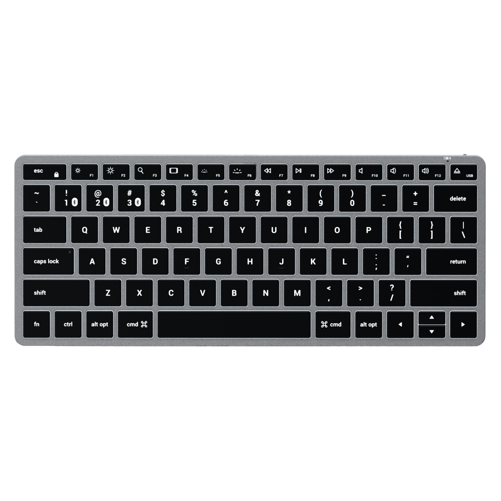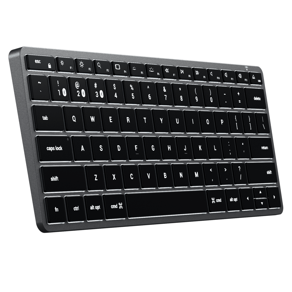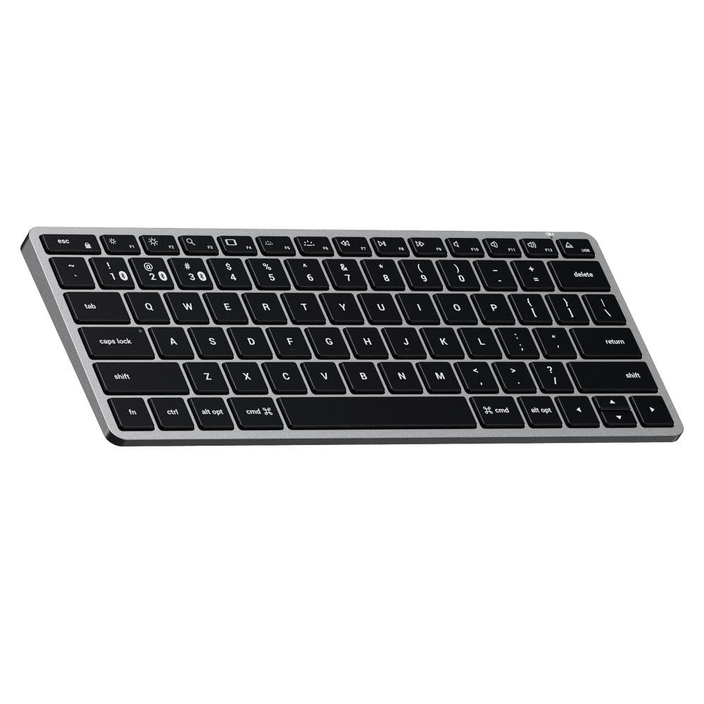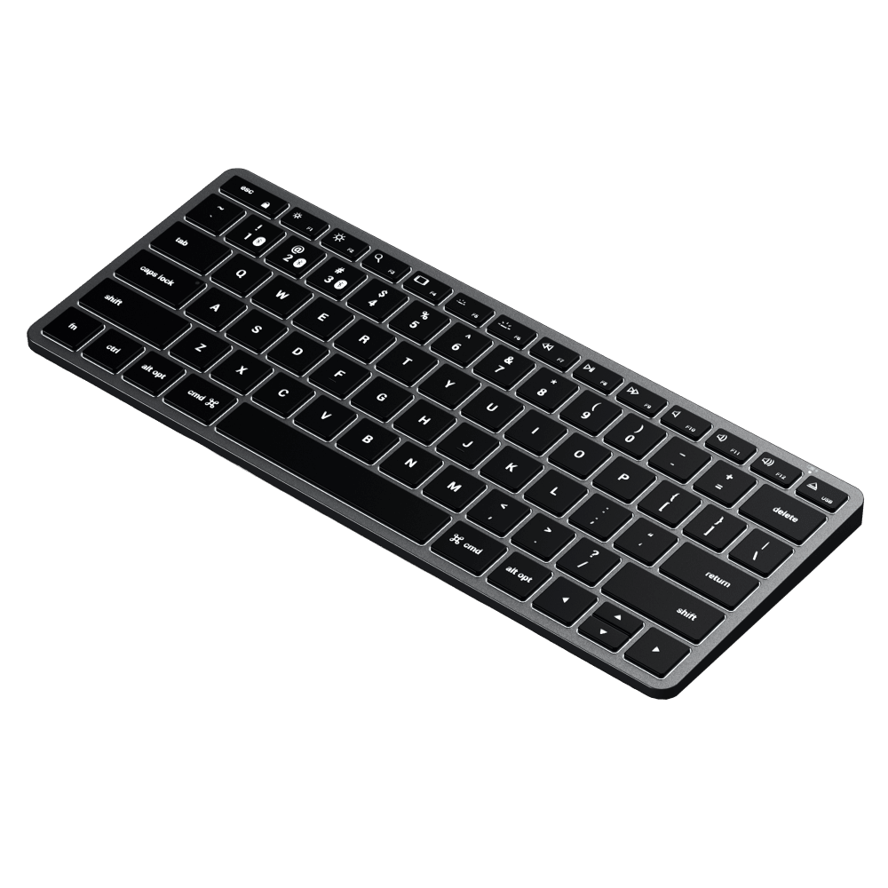 All the features you love in Satechi's most compact keyboard yet. Upgrade your on-the-go setup with the Satechi Slim X1 Bluetooth Backlit Keyboard. Designed with Apple users in mind, the keyboard features a full QWERTY layout, multi-device Bluetooth connection, and macOS function keys all with a sm