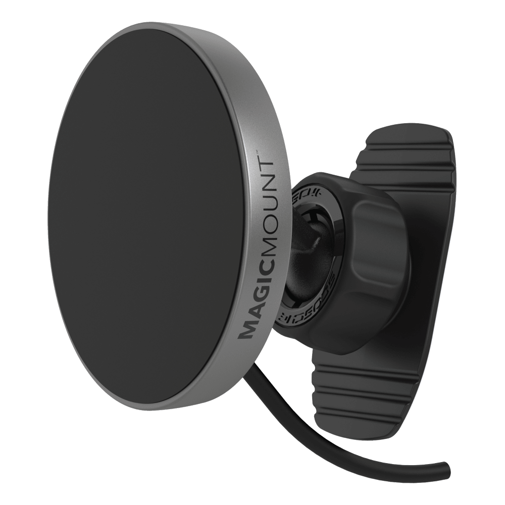 MagicMount is a magnetic mounting system for conveniently mounting smartphones and more. Just hover a device near the magnetic surface and it instantly locks securely in place. Its sleek cradle-free design uses high-powered magnets to secure a device where users use them most.