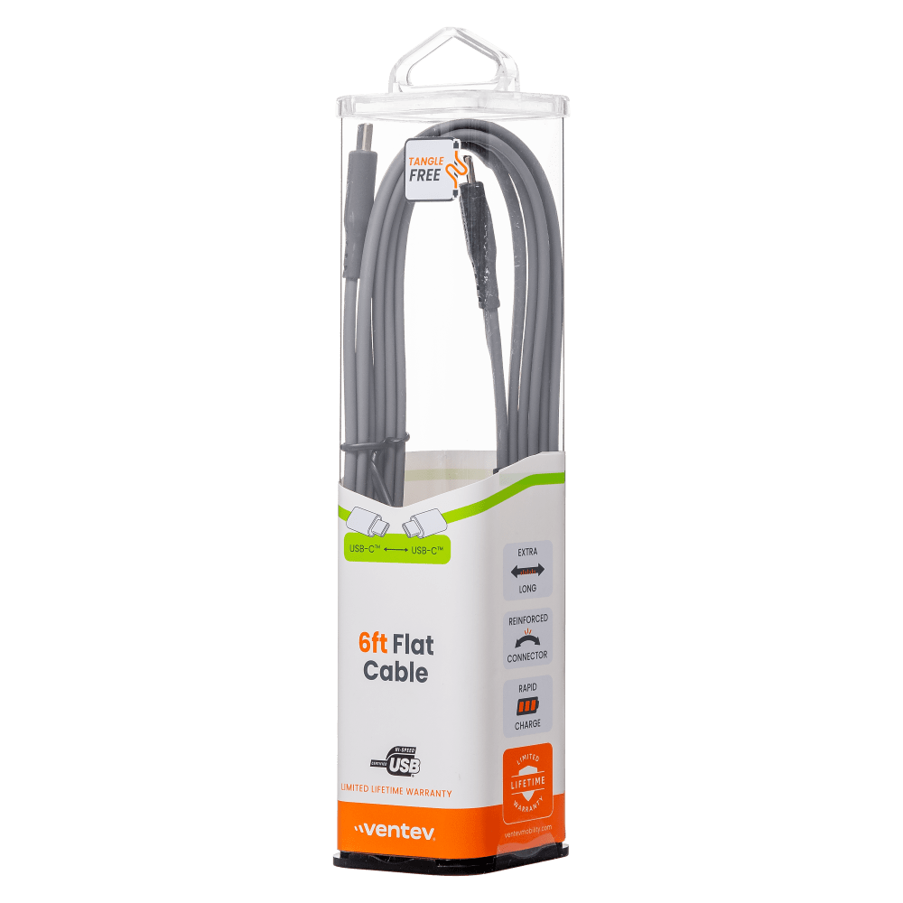 Ventev Flat USB-C to USB-C High Speed Tangle-Free 6 Foot Cable