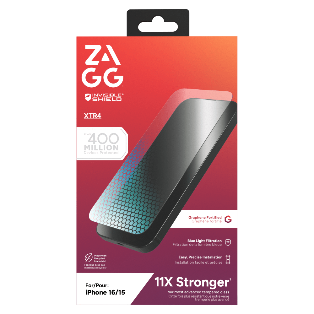 ZAGG InvisibleShield XTR4 Antimicrobial Glass Screen Protector for Apple iPhone 16 / iPhone 15
